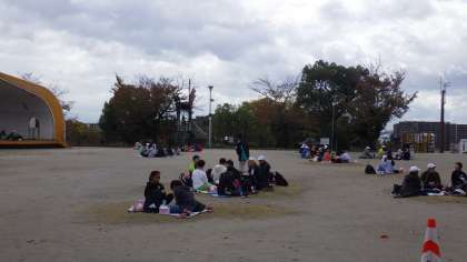 11月13日(月)5年生 社会見学 五月山公園でお弁当です。お弁当の後は遊具で楽しく遊んでいます。