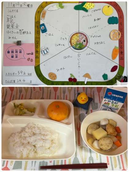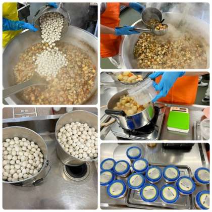 この献立はうずら卵の個別対応献立になりますので、うずら卵を入れる直前のものを取り分け、専用の容器に入れて提供しました。