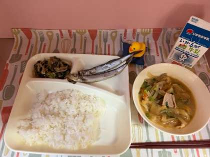 ししゃもが苦手な児童もいましたが、少しでも頑張って食べようとする姿がみられました^^もちろん、大好きな児童もいて、おかわりの列もできていましたよ。