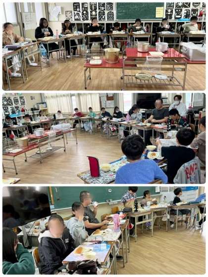 調理員さんの作業の関係もあるため、1日に2クラスずつ教室に入っていただきます。