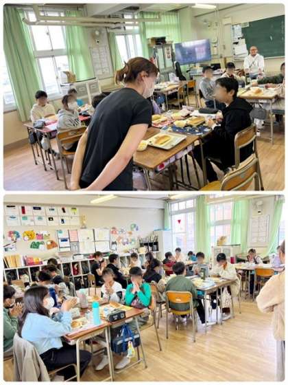 今日は5年1組と5年2組に入っていただき、いろんな話をしながら給食を一緒に食べていただきました^^