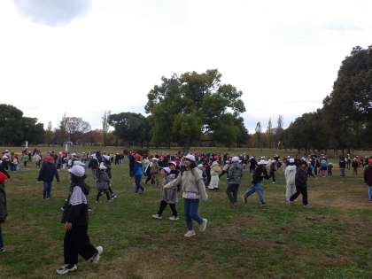11月29日(水)、鶴見緑地公園でウオークラリーを開催しました。素晴らしい青空の下、少し寒かったのですが元気に楽しく活動しました。1年から6年までの縦割り班の活動です。6年生がリーダーシップを発揮して素晴らしいウオークラリーとなりました。