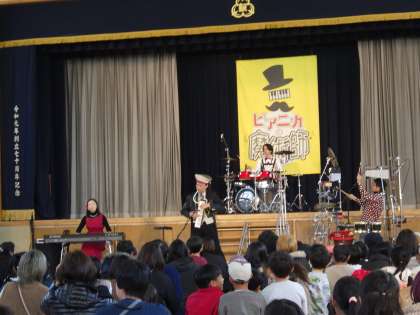 12月2日(土)PTA成人教育主催のみなさんに「ピアニカの魔術師」の演奏会を開催していただきました。楽しい楽しい演奏会、体育館に子どもたちの笑顔と笑い声があふれていました。