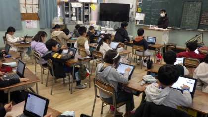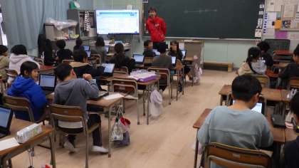 12月5日(火)2年生の授業の様子です。タブレットを使っての授業をしています。
