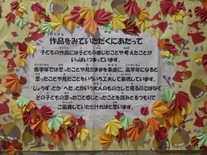 12月12日(火)作品展が昨日から始まりました。子ども達が一所懸命作った作品を展示しています。