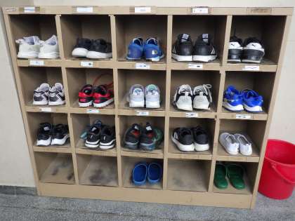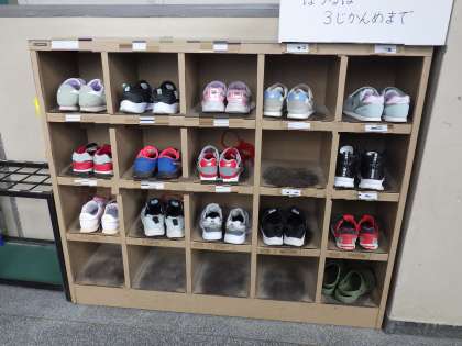 1月10日(水)下駄箱に靴を整理整頓して置いています。1年生の下駄箱です。