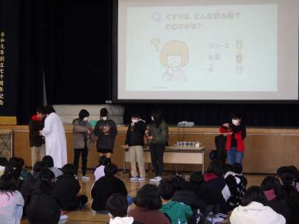 1月12日(金)6年生は薬剤師の先生にお越しいただきお薬について学習しています。