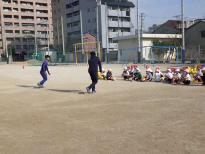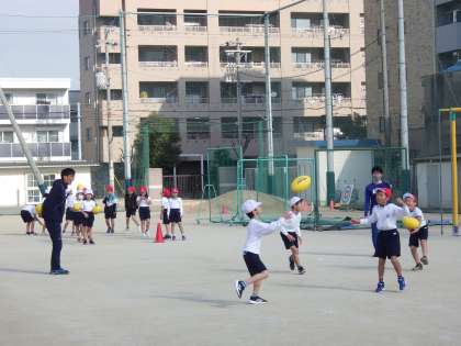 1月12日(金)2年生はラグビーボールを使っての体育の授業です。
