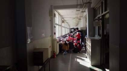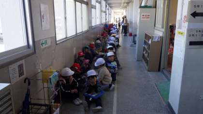 1月17日(火)2限目に地震と津波を想定した避難訓練を行いました。津波を想定して3階以上の廊下に避難しています。