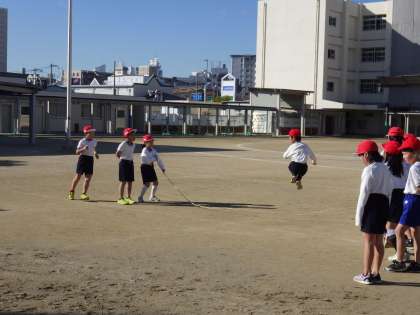 1月25日(木)3年生の体育の様子です。ランニングと縄跳び頑張っています。