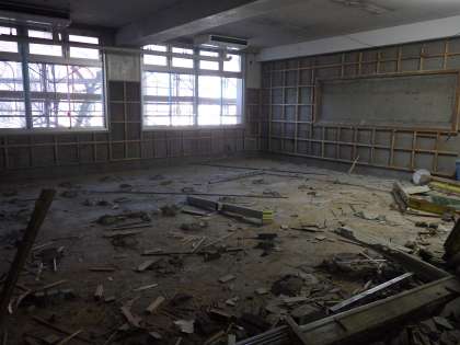 1月25日(木)校舎の長寿命化工事が進んでいます。2階の教室の工事の様子です。