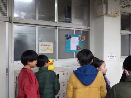 2月5日(月)大谷選手からの贈り物のグローブ今日は4年生の番です。楽しい瞬間です。