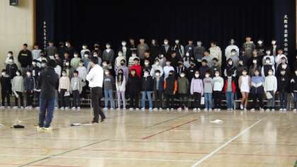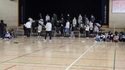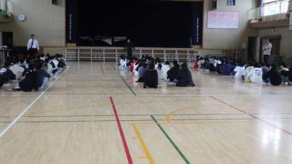 2月15日(木)6年生が来週の学習発表会に向けて体育館で練習しています。