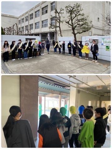 代表委員会の児童が登校時間に校門であいさつをしたり、昼休みにろうか階段を右側を歩くことを呼びかけました。