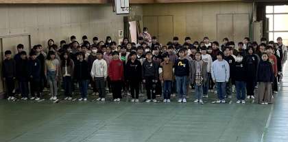 金曜日に行われる卒業を祝う会にむけて、体育館で練習をしました。