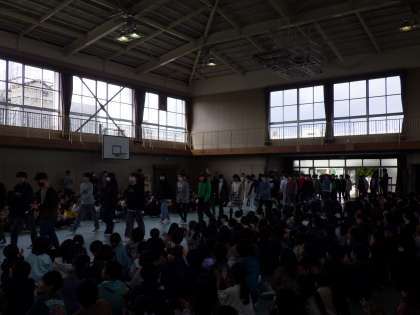 3月1日(金)体育館で卒業を祝う会を行いました。6年生が入場しました。