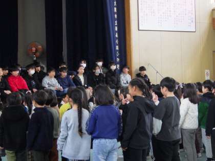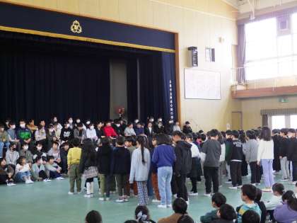 3月1日(金)体育館で卒業を祝う会を行いました。1年生から5年生がお祝いの歌や演奏、ダンスを披露しています。
