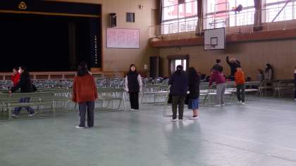 3月4日(月)5年生が卒業式に向けての式場の準備をしてくれています。明日から卒業式に向けての練習が始まります。