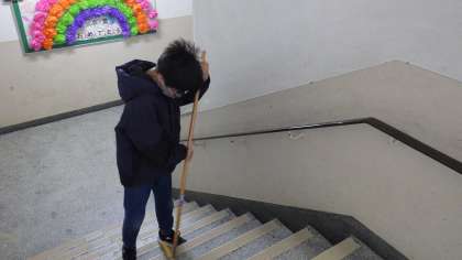 3月15日(金)6年生は最後の掃除で学校中をきれいにしてくれています。