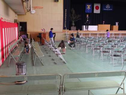 4月4日(木)明日の入学式に向けて新6年が準備をしています。新6年生のみなさんありがとうございました。