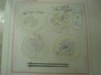 今年度は夏休みの課題として、5年生・6年生の一人一人が献立作りに挑戦しました。その中から学級で1作品を選び、代表献立として応募したものです。