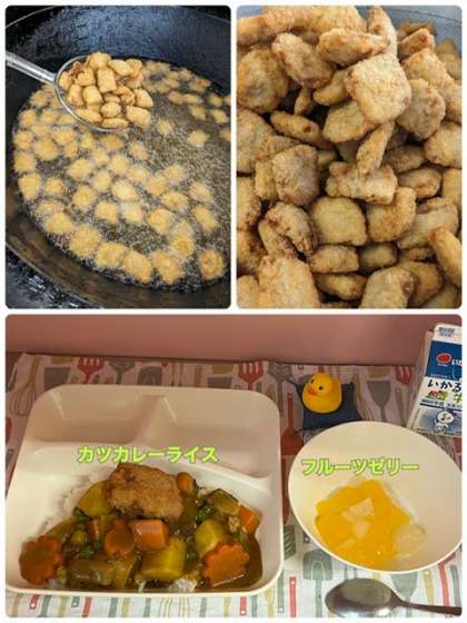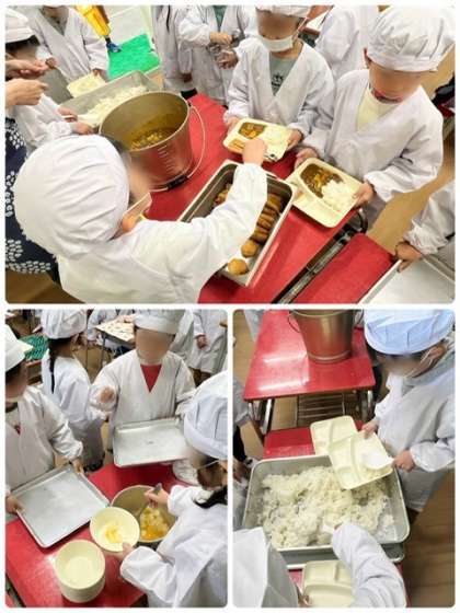 いつものラッキーにんじんだけでなく、今日は調理員さんがラッキーじゃがいもも作ってくださり、子どもたちは大喜びでした♪また、カレーライスとあって、どのクラスの食缶も空っぽになって給食室に返ってきました。