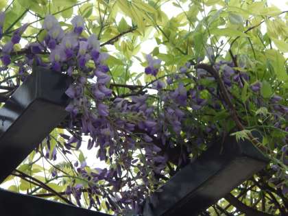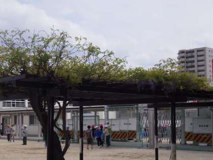 4月11日(木)運動場の藤棚の藤がきれいに咲いています。