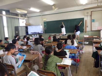 4月15日(月)4年生の授業の様子です。上の写真は理科の様子です。がんばっています。