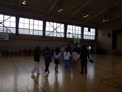 4月16日(火)体育館で学級写真の撮影を行いました。1年生の様子です。