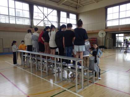 4月16日(火)体育館で学級写真の撮影を行いました。5年生の様子です。