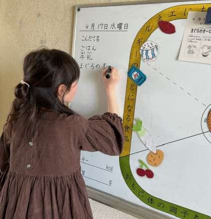 給食委員会の児童は、1年生が読みやすいようにと、丁寧に明日の献立を書いていました。いつもありがとう♪