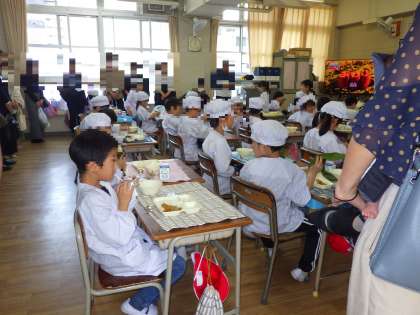 4月25日(木)1年生の給食参観の様子です。多くの保護者の皆様にご来校いただきました。お忙しい中ありがとうございました。