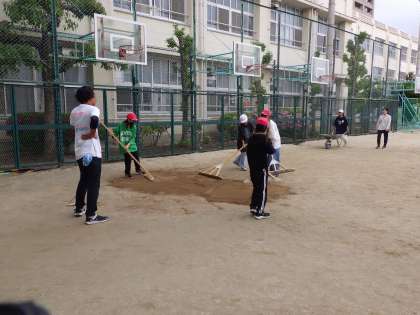4月30日(火)委員会が本格的に始まりました。運動委員会のみなさんは運動場に土を入れてくれています。栽培委員会のみなさんは学習園の草引きをしてくれました。