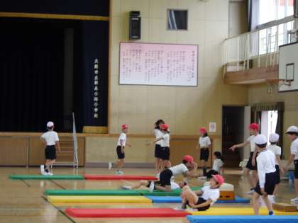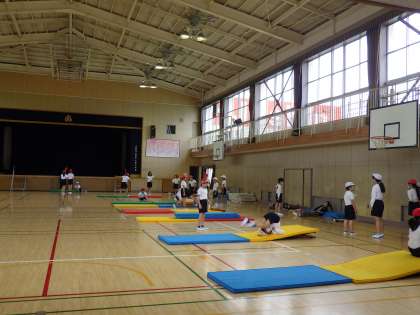 5月1日(水)朝から雨です。体育館での5年生の体育の様子です。