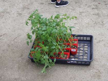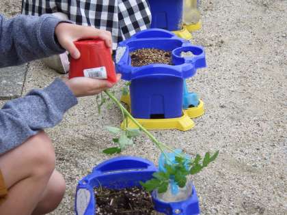 5月9日(木)2年生はミニトマトの苗を植えています。