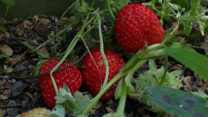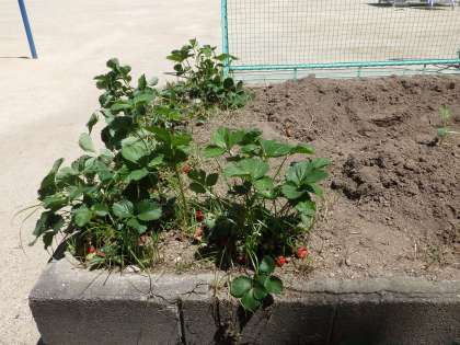 5月10日(金)運動場に面した学習園でおいしそうなイチゴが実っています。