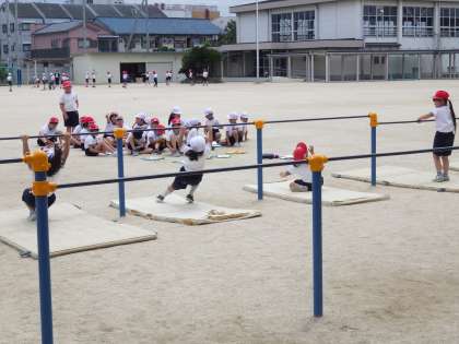 5月15日(水)2年生の体育の様子です。鉄棒頑張っています。