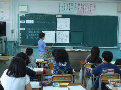 思考力や表現力の育成に向けて、授業の中で子どもたちの学び合い活動の充実を図るため、ホワイトボードを活用しています。自分の考えを表現したり、発表をとおしていろいろな考えを共有したりして、子どもたちが考える楽しさを味わえるよう取り組んでいます。