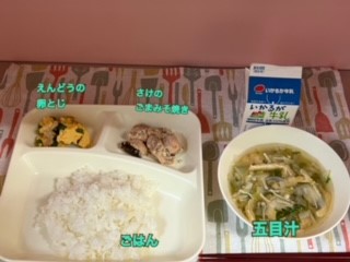 今日の「えんどうの卵とじ」は卵の除去食献立でした。