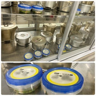 アレルギー児童の分は専用の容器に入れ、間違いのないよう名札をつけて、担任の先生に直接手渡ししています。