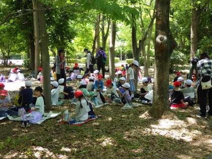 5月17日(金)1年生は遠足で大阪城公園に行きました。楽しいお弁当に時間です。