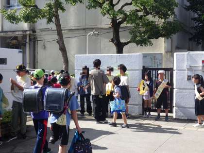 6月10日(月)今日からあひるの力や運動です。代表委員、6年生のみなさんが朝、校門で挨拶してくれています。