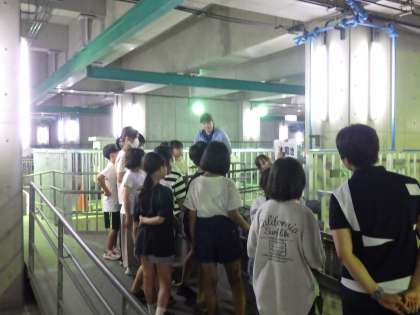 6月17日(月)今日から4年生の社会見学、庭窪浄水場へ行きました。4年1組の様子です。