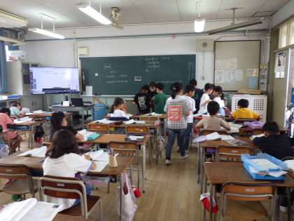 6月18日(火)朝から激しい雨が降っていました。午前中は水泳の授業を行うことができませんでした。3年生の様子です。