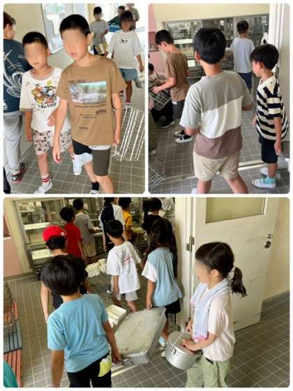 「きゅうりのしょうがづけ」は蒸したきゅうりを、しょうが汁・砂糖・うすくちしょうゆを合わせて作った調味液につけ、十分に味を含ませています。野菜のおかずの中でも、児童に人気の高い献立の1つです。