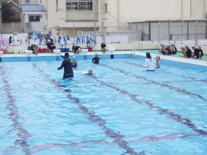 6月27日(木)2年生の水泳の授業の様子です。頑張っています。