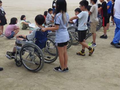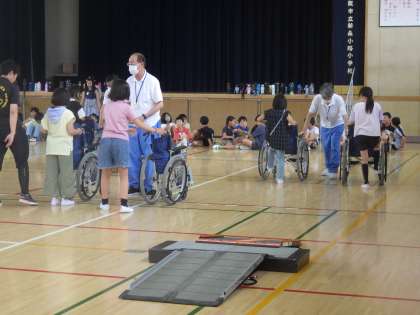 6月27日(木)4年生はリハビリテーションセンターの皆様にお越しいただき車いす体験を行っています。操作の仕方、介助の仕方を体験をしています。