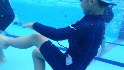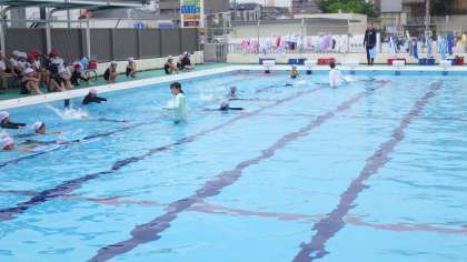 7月2日(火)2年生の水泳の授業です。ビート板を使って頑張って泳いでいます。