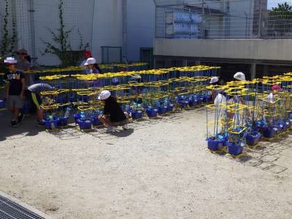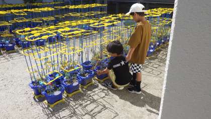 7月8日(月)2年生が育てているミニトマトがおいしそうに赤い実をつけています。