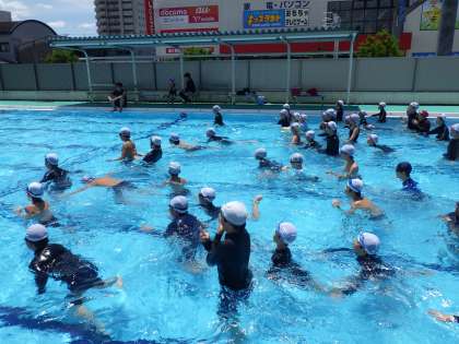 7月8日(月)6年生の水泳の授業の様子です。頑張っています。